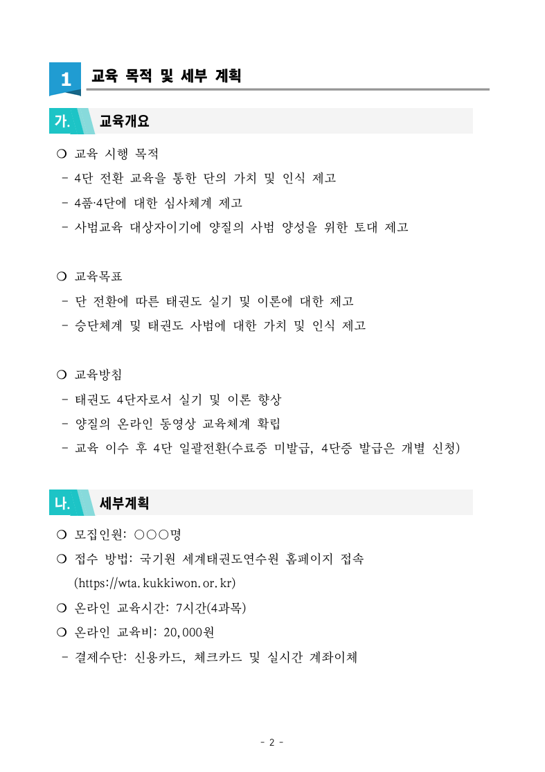 [국기원] 2026년도 4품 4단 전환 보수교육(온라인 교육) 모집요강