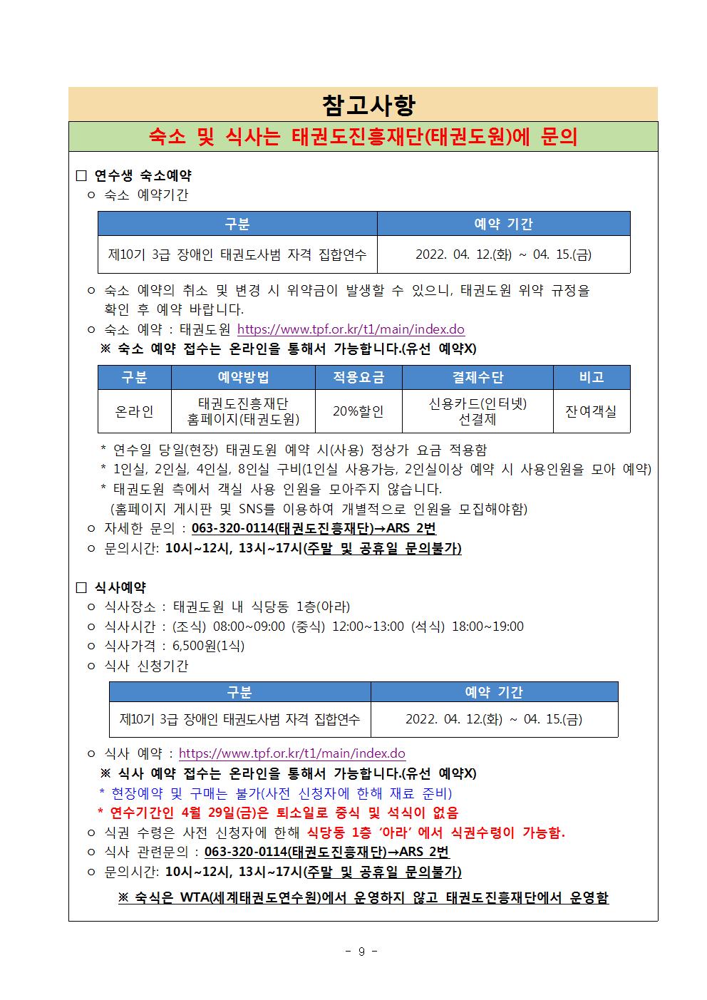 제10기 3급 장애인 태권도사범 자격연수계획 안내