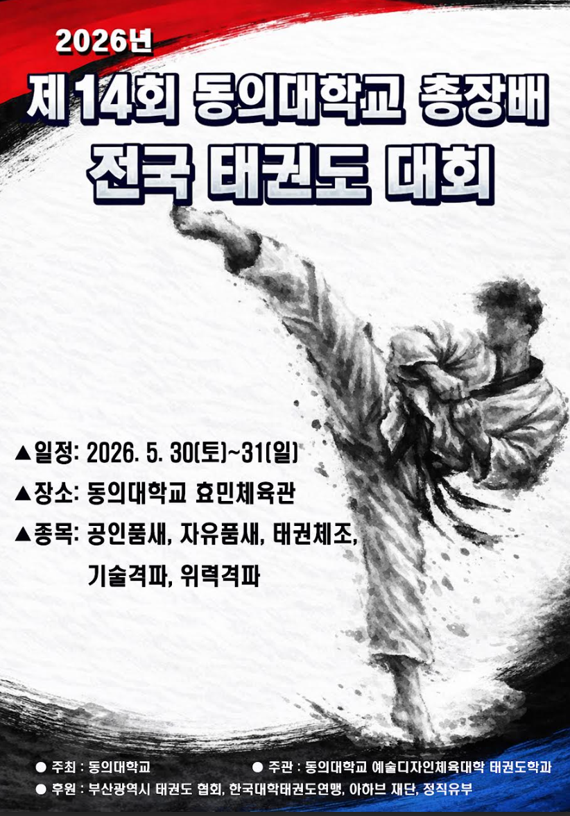 2026년 제14회 동의대학교 총장배 전국 태권도 대회 안내