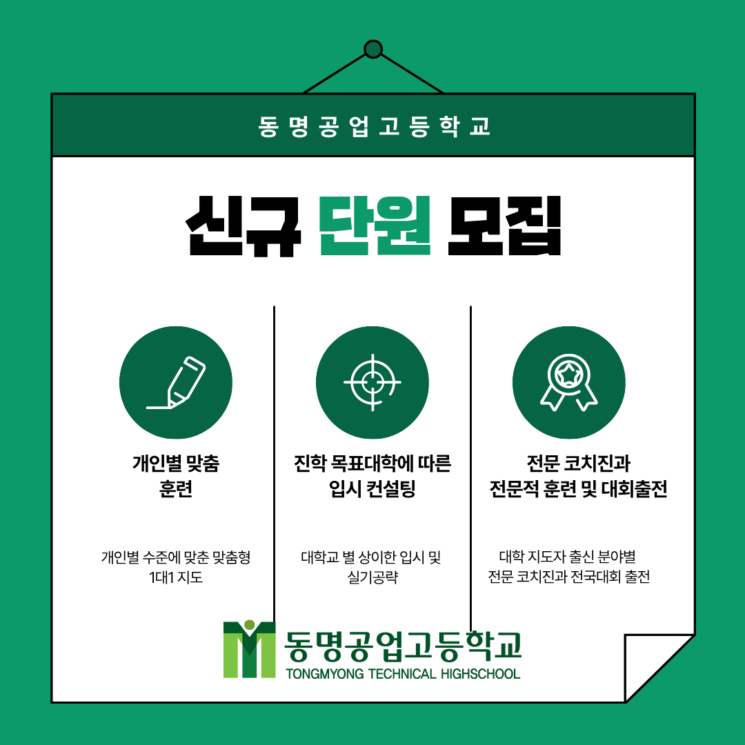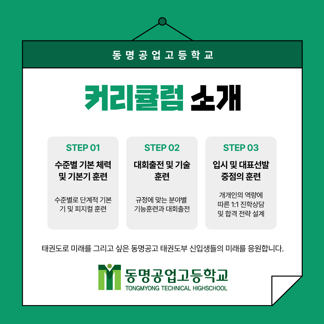 동명공업고등학교 태권도부 신규 단원 모집 안내