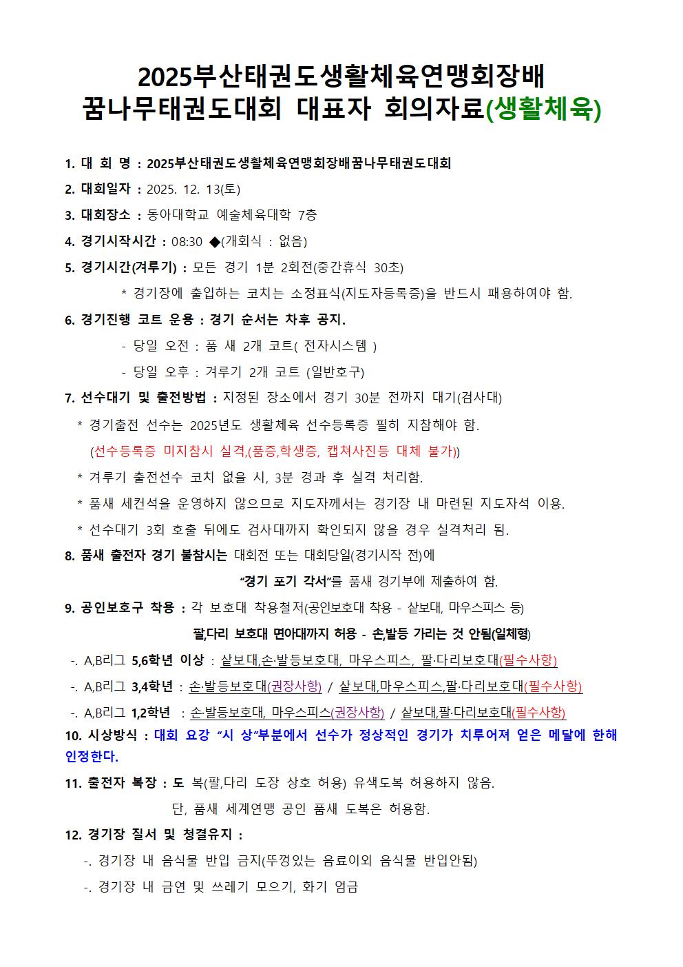 - [대표자회의결과] 2025부산태권도생활체육연맹회장배꿈나무대회